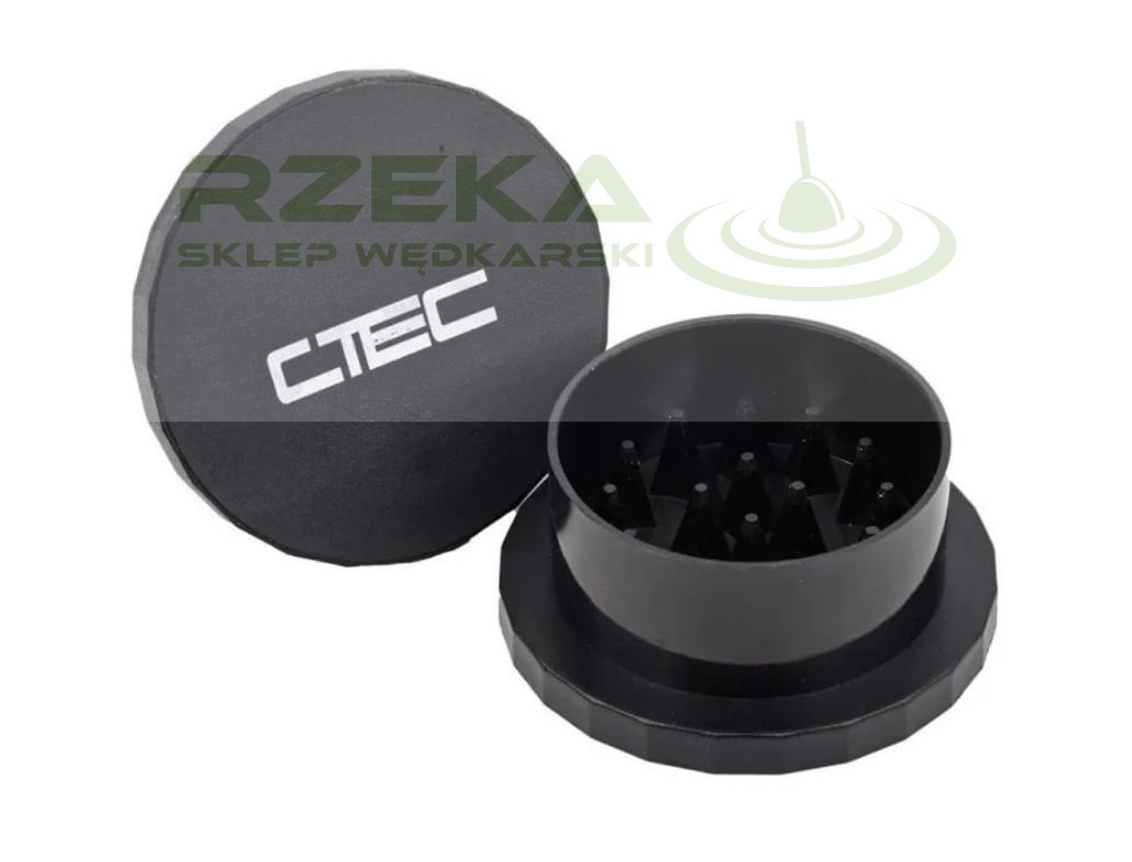 Kruszarka CTEC Crusher do rozdrabniania kulek proteinowych i pelletu Można zmielić zarówno na dużą frakcję, jak i na małe cząstki. Wielkość cząstek zależy tylko od czasu mielenia. Im dłużej obracamy kruszarką tym nasze przynęty będą drobniej zmielone. Aby prawidłowo wykonać kruszenie należy umieścić przynęty w dolnej części kruszarki, przykryć górną częścią i obracać do uzyskania żądanej konsystencji.