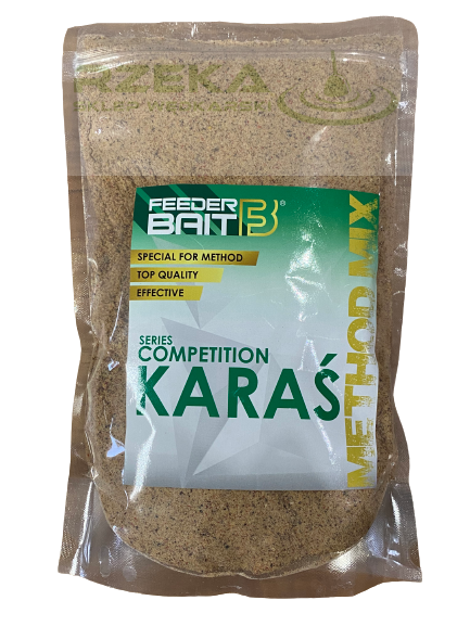 Nowa zanęta Feeder Bait z serii Competition Method Mix KARAŚ dedykowana do połowu ryb karpiowatych. Jest to mieszanka paszowo uzupełniająca dla dzikich ryb. Zanęta została wyprodukowana zgodnie z technologią produkcji zanęty Feeder Bait. Zawiera w swoim składzie niezwykle bogatą gamę surowców wpływających na jej skuteczność. Do produkcji wykorzystano również zioła charakterystyczne dla wabienia Karasia oraz Linów.