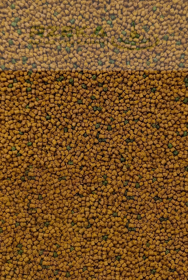 Żółty pellet z pojedynczymi zielonymi granulami działa również jako bodziec wzrokowy, zwiększając zainteresowanie ryb i stymulując ich aktywność żerową.