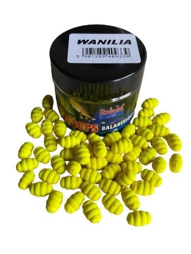 Wafters ślimak to odmiana przynęty balansującej o zmienionym kształcie, jak też kolorach, przez co staje się bardzo atrakcyjną dla ryb. Przypomina kształt ślimaka wodnego. Znakomita jakość użytych surowców wabi ryby nawet najbardziej ostrożne. Nietypowy kształt idealnie pasuje do montażu na przyponie włosowym z gumowym pierścieniem.