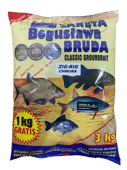 Zanęta Zig Rig Chmura to typowa zanęta do nęcenia karpi w toni wody przy połowie metodą Zig Rig. Zanęta tworzy w wodzie chmurę w jasnym naturalnym kolorze, która w zależności od stopnia domoczenia pracuje w różnych partiach wody. Zanętę Zig Rig Chmura można w dowolny sposób aromatyzować ulubionymi atraktorami.
